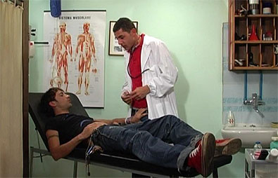 Sex filled the room as this tall, hot-looking blond stud came complaining about pains in the lower abdomen. The doctors almost felt like competing for the privilege to examine him! Watch as his beautiful body gets the attention it deserves; the doctor got on his knees and gently pressed his fingers against certain areas in the guy's most intimate zone. A prostate examination was imminent! The hot stud was positioned with his legs spread, and the well-aroused doctor studied his manhole, slowly and sensually. This room never saw this much chemistry between men!